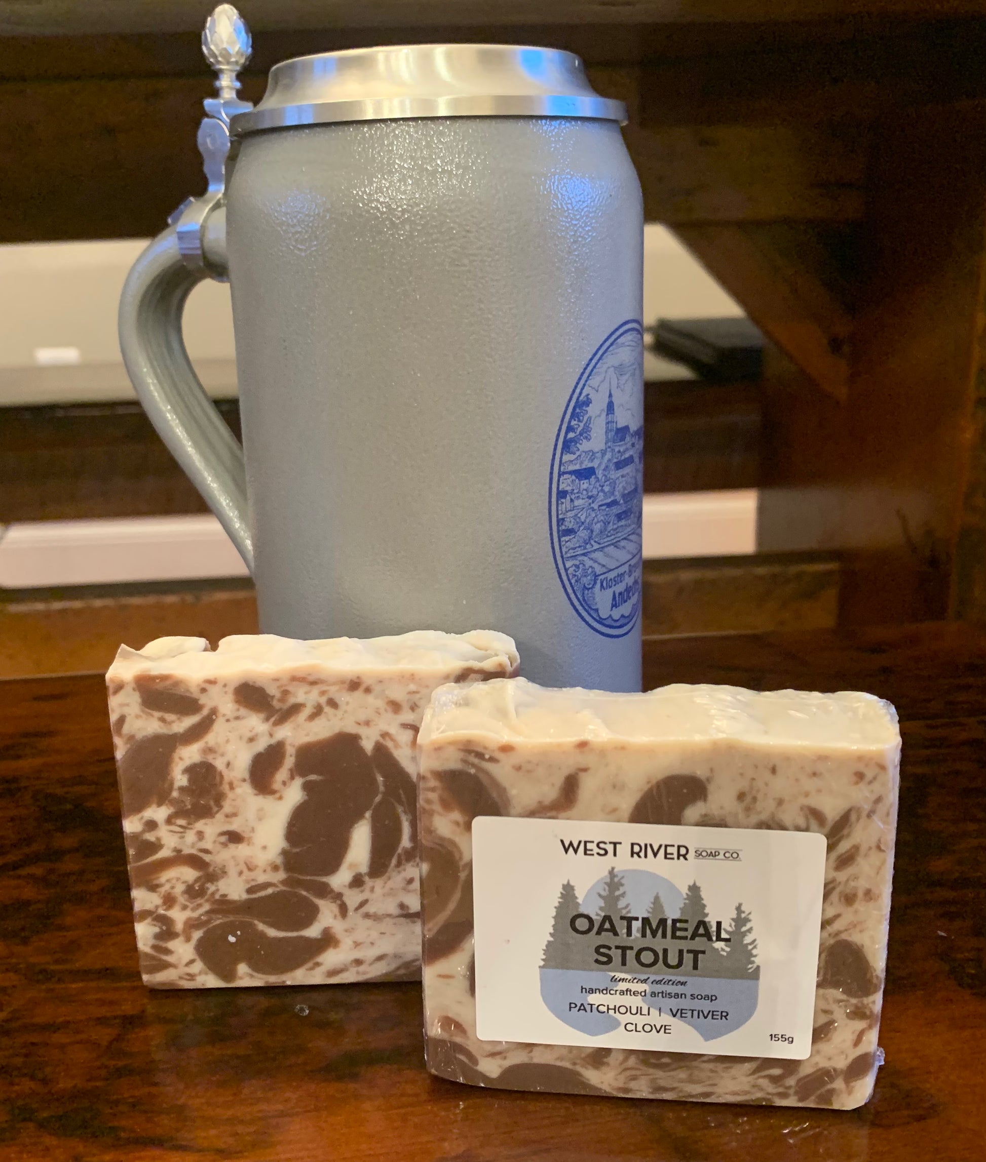 Ingredients: sodium olivate, sodium lardate*, sodium cocoate*, oatmeal stout beer, aqua, sodium shea butterate*, sodium avocadate*, sodium ricinoleate*, avena sativa kernel flour (colloidal oats), Kaolin clay, Rhassoul clay, cocoa powder, cedrus atlantica (cedarwood atlas) oil, pogostemon cabin (patchouli) oil, citrus bergamia (bergamot) oil, vetiveria zizazoides (vetiver) oil, eugenia caryophyllus (clove) bud oil, coffea arabica (roasted coffee) oil. *organic