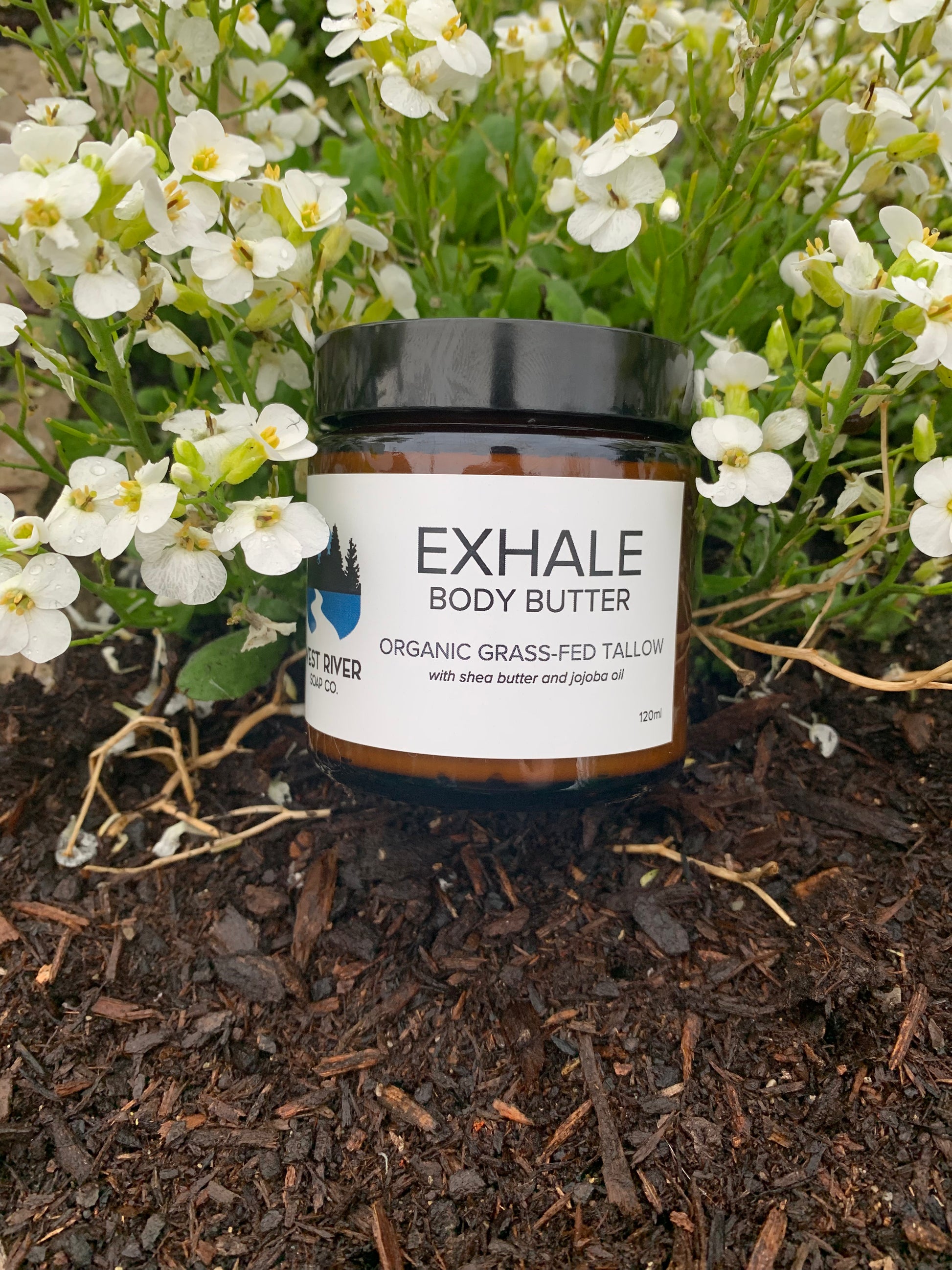 Exhale stress away with luxurious, nourishing whipped body butter made with locally sourced, grass-fed, grass-finished organic tallow.